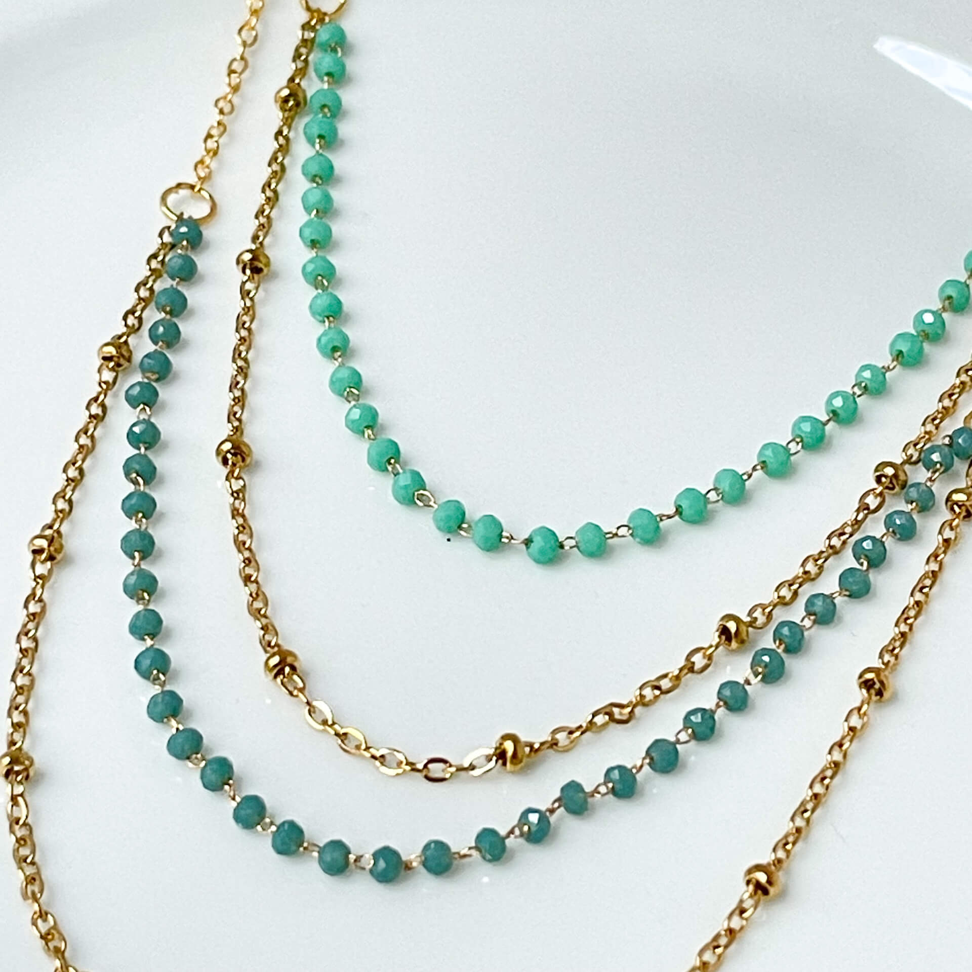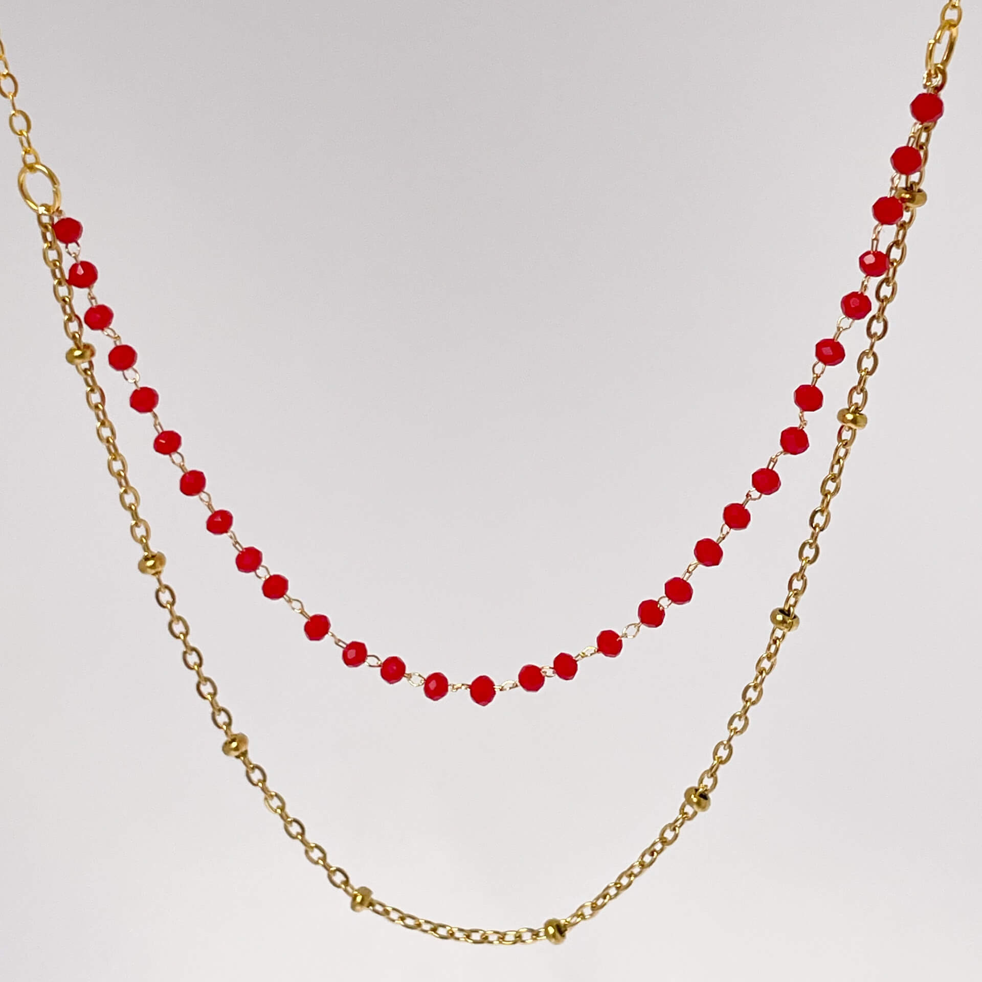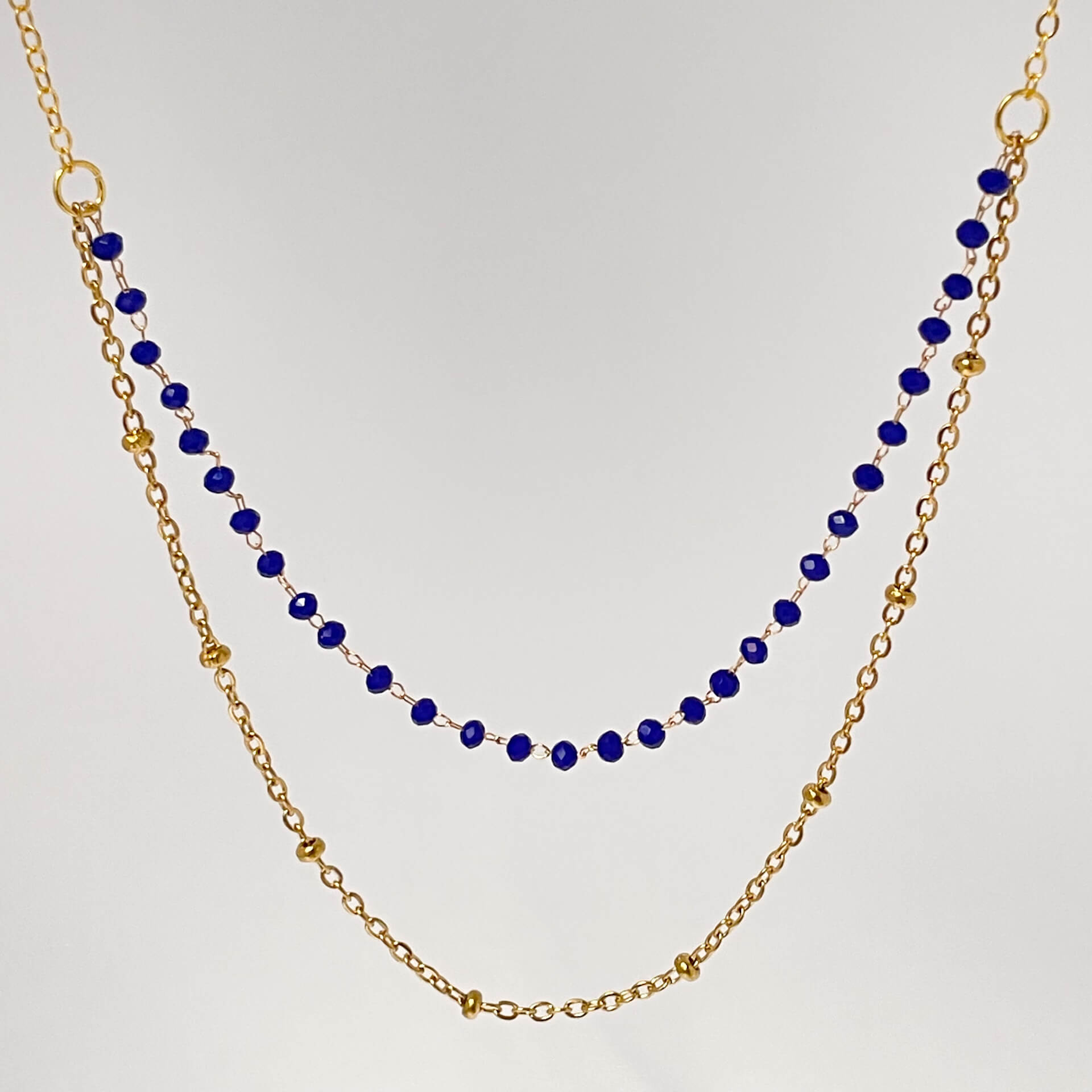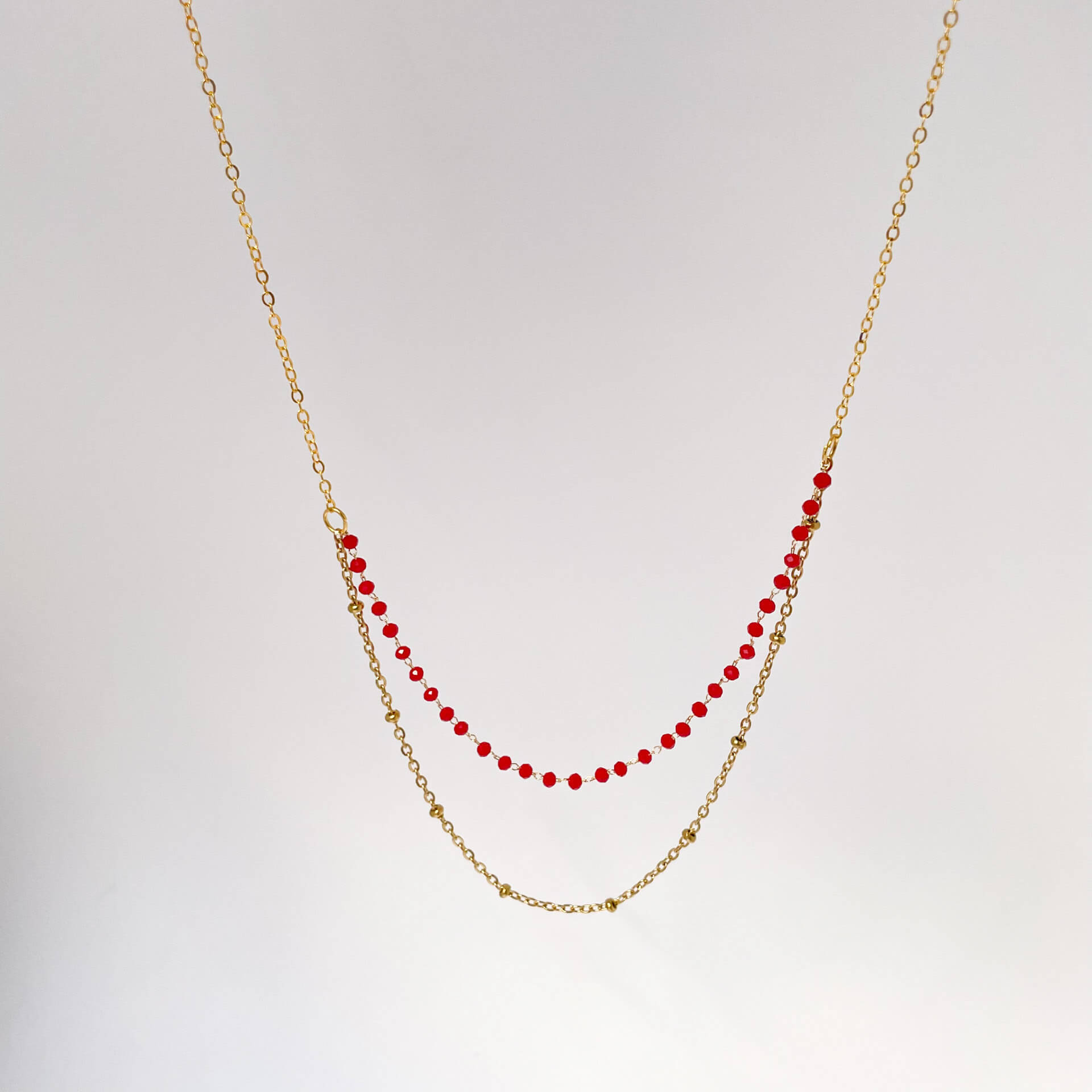 Collier double en acier inoxydable et perles de verre, doté d’un fermoir unique qui évite les colliers emmêlés. Ce bijou crée un effet d’accumulation sans effort : un seul fermoir, deux rangs apparents. Pratique au quotidien, résistant et idéal pour un look superposé maîtrisé.